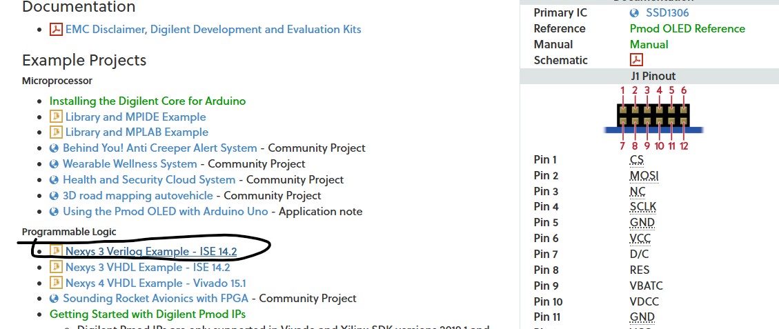 The Pmod OLED example page provided an example package