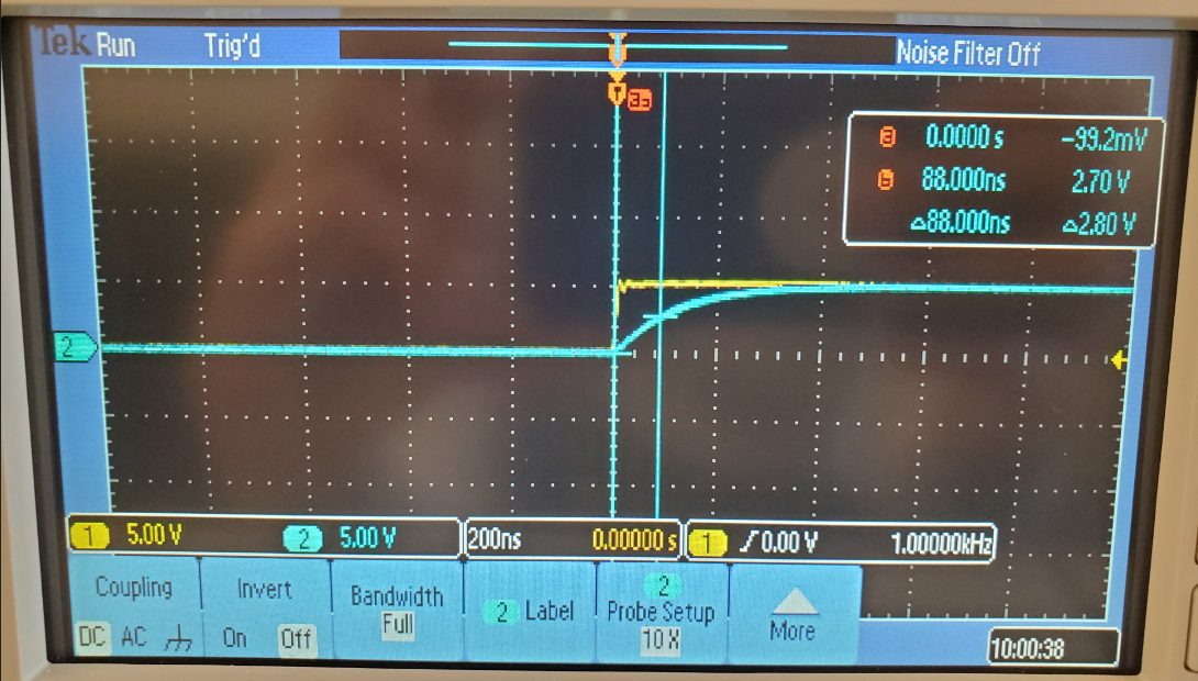 Figure 1.2d. The capacitor reaches full charge due to reducing the resistor to 100ohm.