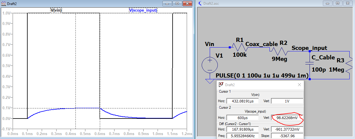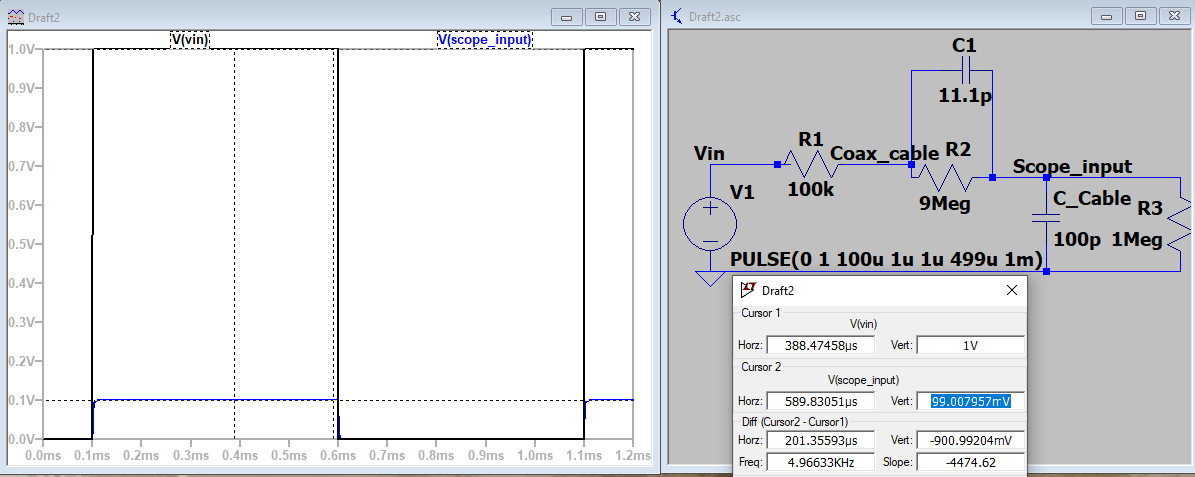 Figure 3.1 Compensation probe simulation with 9Meg ohm resistor.