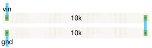 Electric VLSI uses files that contain schematic, layout, and other things under one program name, cells and libraries. To start a new project a new cell must be made. This lab used 300nm technology. With a new cell, a schematic and layout can be created. On the Schematic, a n-well resistor is selected and dropped into view. Dimensions of the resistor are set to 15 width and 187.5 length. On the layout, a n-well resistor is added to the view. Dimensions are set to L = 187.5, W = 15. Another Resistor is added to both schematic and layout and they are wired together using an ARC. LTSPICE is then used to simulate and prove the circuit works.