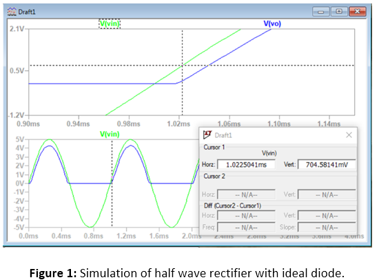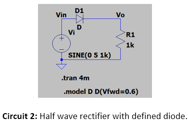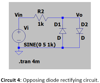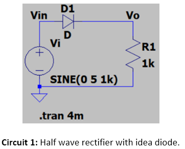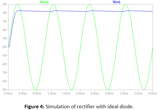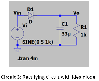 The rectifier shown in Circuit 1 was simulated with ideal