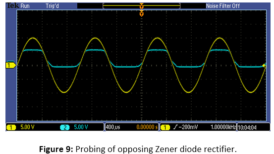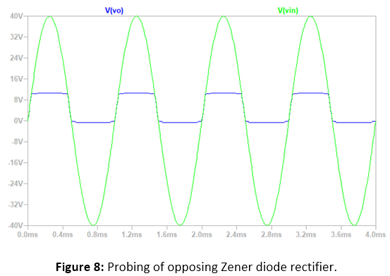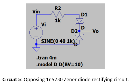 Similarly, the opposing Zener diode rectifier in Circuit 5 was simulated an built
