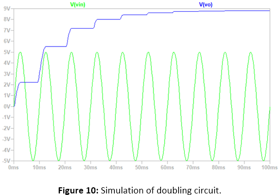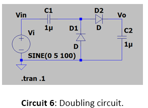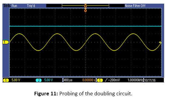 The doubling circuit is simulated and built on a breadboard.