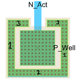 1: Nact Pwell Diode 1: (10x80) 2: (68x10) 3: